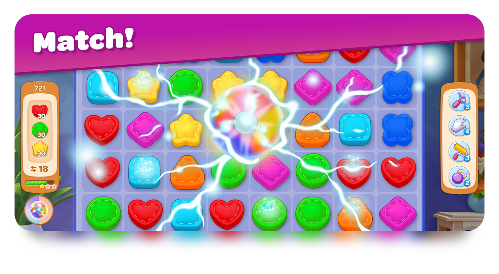 CHALLENGE yourself with exclusive match-3 levels: tons of fun, featuring